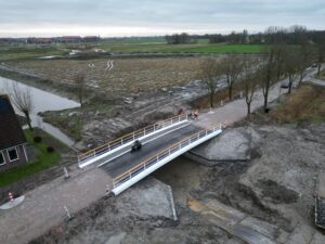 Donderdagochtend 14 december is de brug in het zuiden van Middelsee in gebruik genomen. Het verkeer kan voortaan weer rechtdoor over de Brédyk. De afgelopen maanden heeft het verkeer gebruik kunnen maken van de bypass. Die blijft nog even liggen. Dit heeft te maken met de werkzaamheden aan de kabels en leidingen die binnenkort plaatsvinden rondom de brug. Verder maken we het straatwerk onder de brug af en graven we de Middelseefeart hier verder uit zodat men volgend jaar met het sloepje vanuit de Middelseefeart richting het Alddjip in De Zuidlanden kan varen.