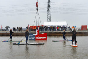 Nadat wethouder Hein de Haan en dhr. Van Spijker de misthoorn hadden ‘geblazen kwamen suppers, greenjoy bootjes en een boot van een bewoner om de hoek de haven invaren. Daarnaast werd het waterelement “hier komt iets bijzonders boven water” uit het water gehesen.