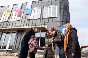 Gister bereikte het IKC in Middelsee het hoogste punt. En dit werd gevierd met gebak en een woordje van dank richting de vakmannen die hier hard aan het werk zijn. Ook is de eerste leerling aangemeld om naar school te gaan. De oplevering staat deze zomer gepland en na de vakantie op 4 september opent het IKC haar deuren.