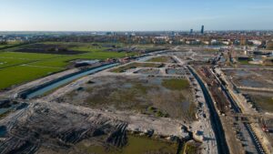 De haven van Middelsee is inmiddels gerealiseerd, wat goed te zien is op onderstaande foto’s. Ook zijn we druk bezig met de ovonde bij de Felling. In het zuiden zijn we onder andere bezig met de aanleg van de brug bij de Brédyk.